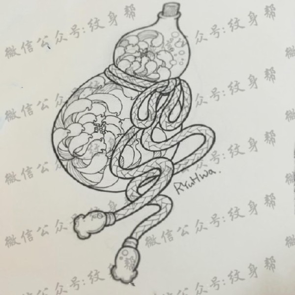 葫芦手稿_20张和葫芦相关的纹身手稿图案素材图片