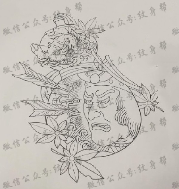 半甲唐狮手稿 传统的9款唐狮主题半甲纹身手稿图片