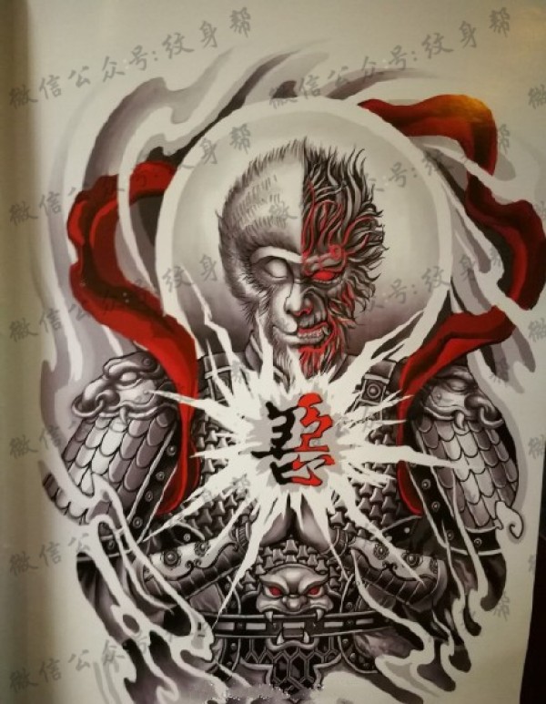 孙悟空手稿_17张霸气斗战胜佛齐天大圣红脸孙悟空纹身手稿图案素材