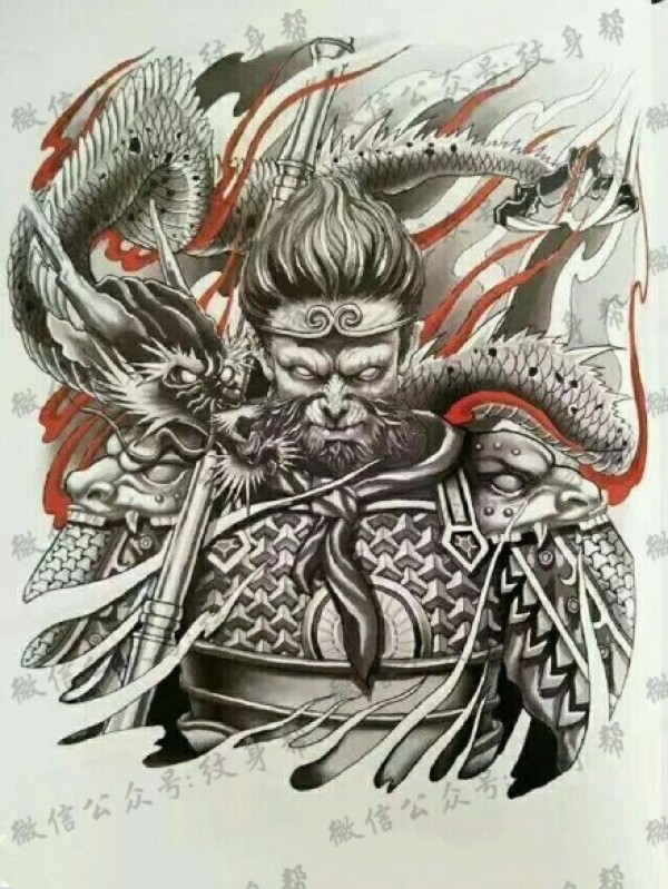 孙悟空手稿_17张霸气斗战胜佛齐天大圣红脸孙悟空纹身手稿图案素材
