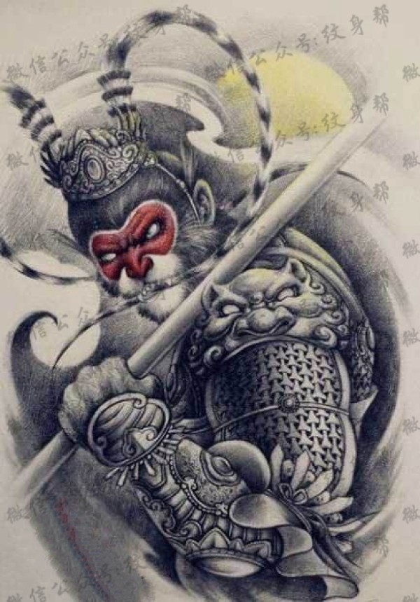 孙悟空手稿_17张霸气斗战胜佛齐天大圣红脸孙悟空纹身手稿图案素材