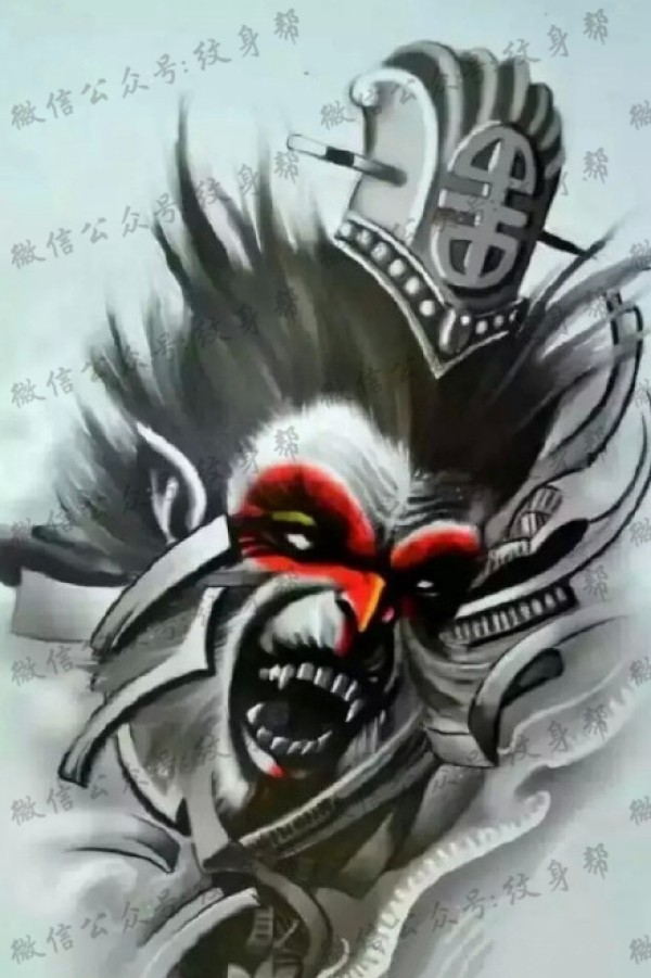 孙悟空手稿_17张霸气斗战胜佛齐天大圣红脸孙悟空纹身手稿图案素材