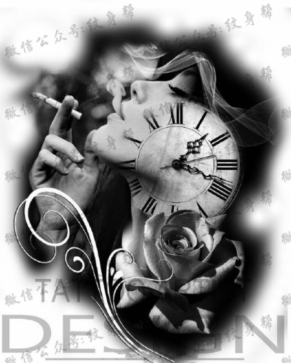 钟表纹身手稿_30张钟表指南针的纹身手稿图案素材图片
