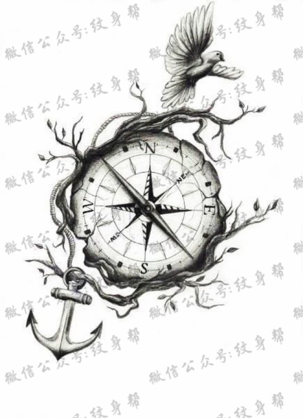 钟表纹身手稿_30张钟表指南针的纹身手稿图案素材图片