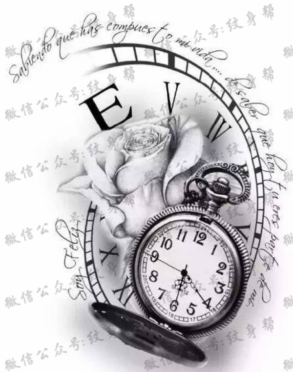 钟表纹身手稿_30张钟表指南针的纹身手稿图案素材图片