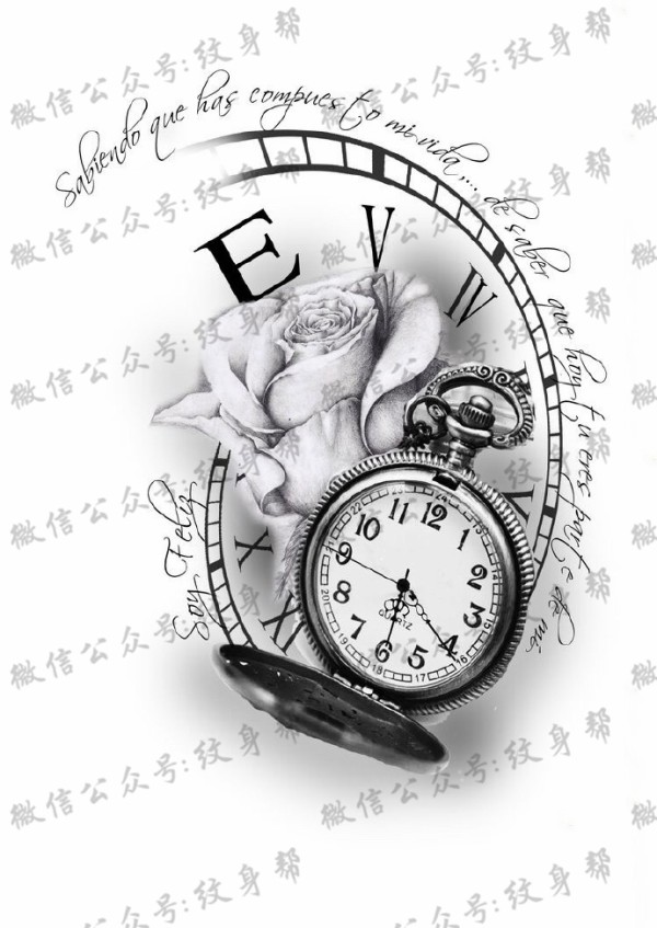 钟表纹身手稿_30张钟表指南针的纹身手稿图案素材图片