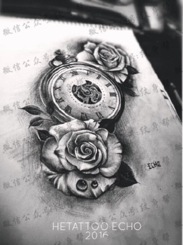 钟表纹身手稿_30张钟表指南针的纹身手稿图案素材图片