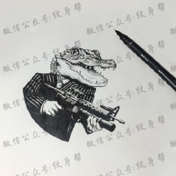 鳄鱼纹身手稿_9张动物鳄鱼纹身手稿图案素材图案
