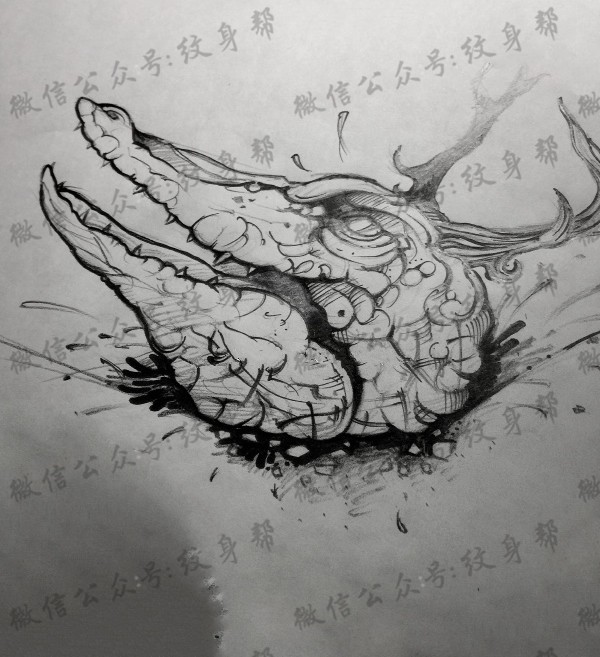 鳄鱼纹身手稿_9张动物鳄鱼纹身手稿图案素材图案