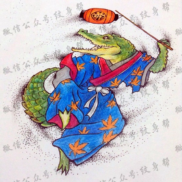 鳄鱼纹身手稿_9张动物鳄鱼纹身手稿图案素材图案