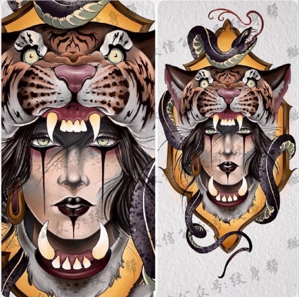 传统艺妓般若纹身图案手稿