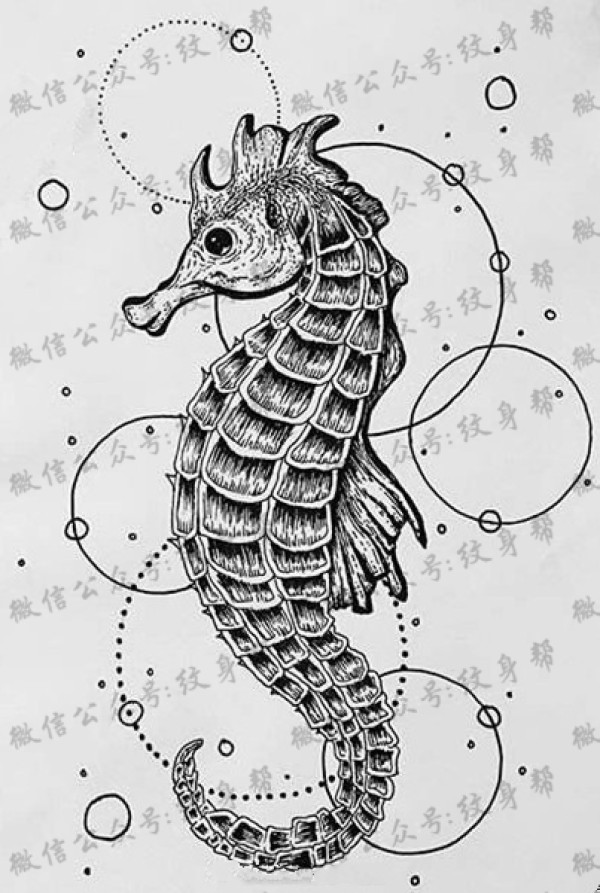 海马纹身手稿_29张动物纹身海马手稿图案素材图片