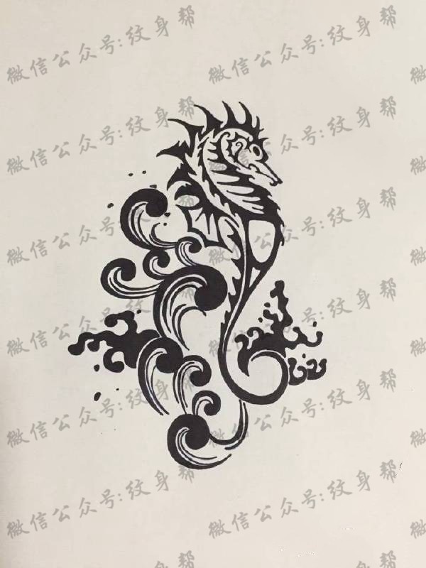 海马纹身手稿_29张动物纹身海马手稿图案素材图片