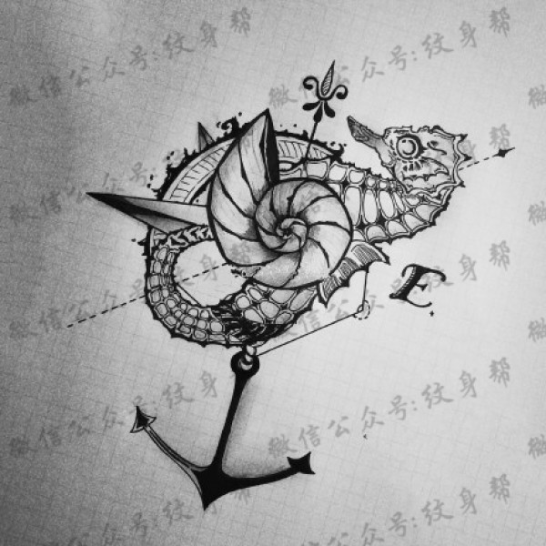 海马纹身手稿_29张动物纹身海马手稿图案素材图片