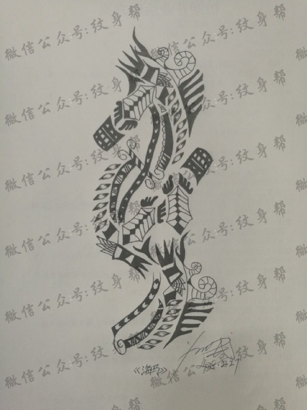 海马纹身手稿_29张动物纹身海马手稿图案素材图片