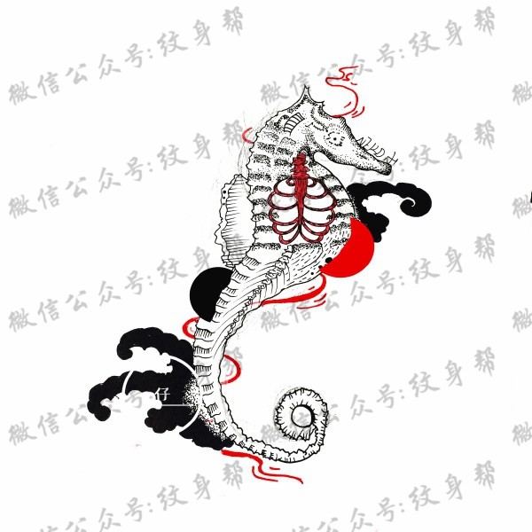 海马纹身手稿_29张动物纹身海马手稿图案素材图片