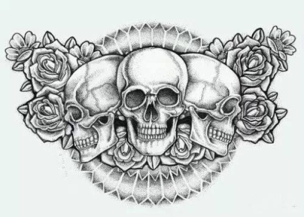 几何骷髅手稿图片_19张骷髅+几何图形纹身手稿图案
