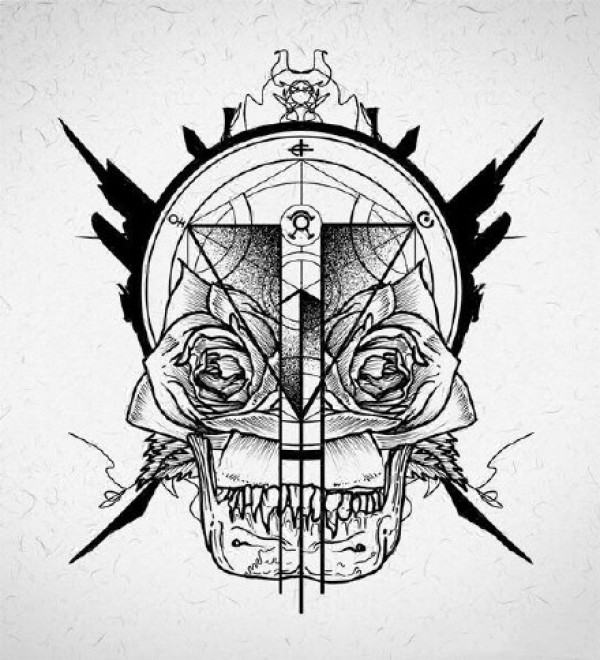 几何骷髅手稿图片_19张骷髅+几何图形纹身手稿图案