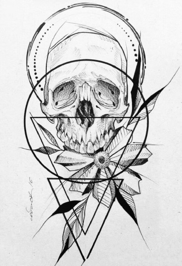 几何骷髅手稿图片_19张骷髅+几何图形纹身手稿图案
