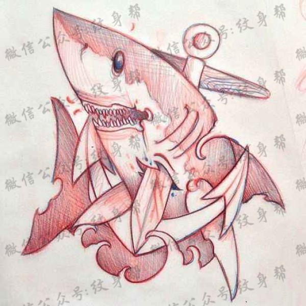 鲨鱼纹身手稿_33张海底动物纹身鲨鱼手稿图案图片