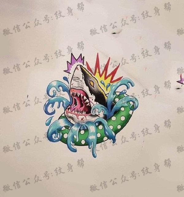 鲨鱼纹身手稿_33张海底动物纹身鲨鱼手稿图案图片