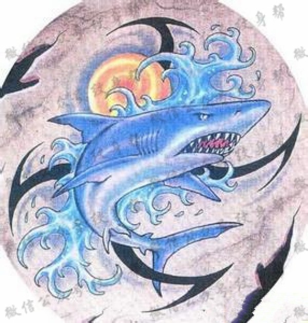 鲨鱼纹身手稿_33张海底动物纹身鲨鱼手稿图案图片