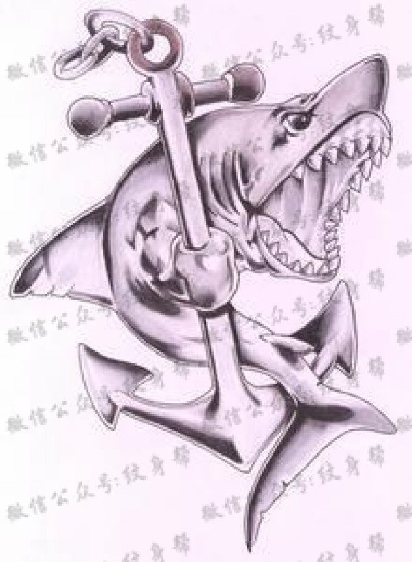 鲨鱼纹身手稿_33张海底动物纹身鲨鱼手稿图案图片