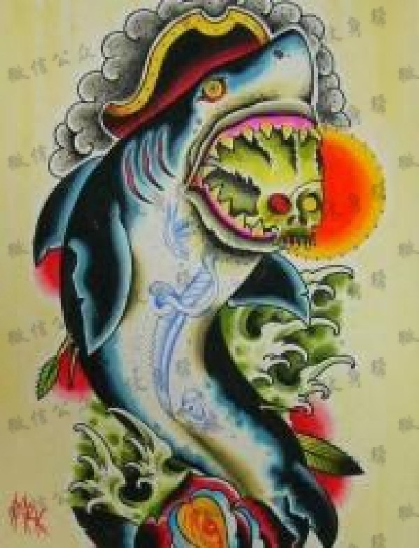 鲨鱼纹身手稿_33张海底动物纹身鲨鱼手稿图案图片