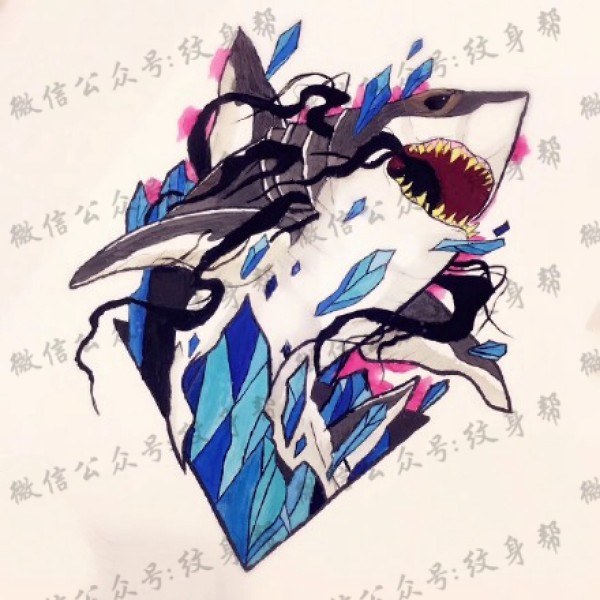 鲨鱼纹身手稿_33张海底动物纹身鲨鱼手稿图案图片