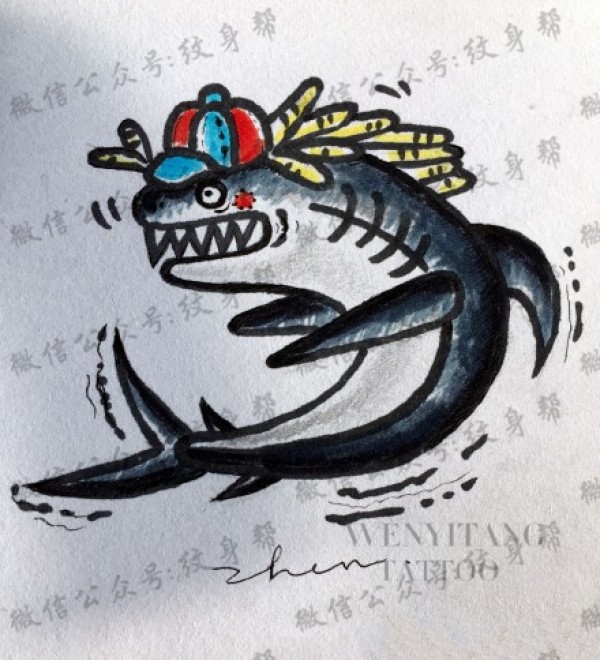 鲨鱼纹身手稿_33张海底动物纹身鲨鱼手稿图案图片