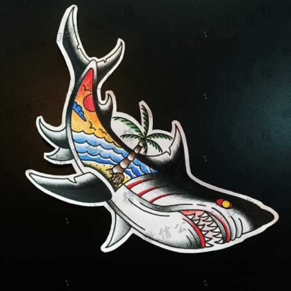 鲨鱼纹身手稿_33张海底动物纹身鲨鱼手稿图案图片