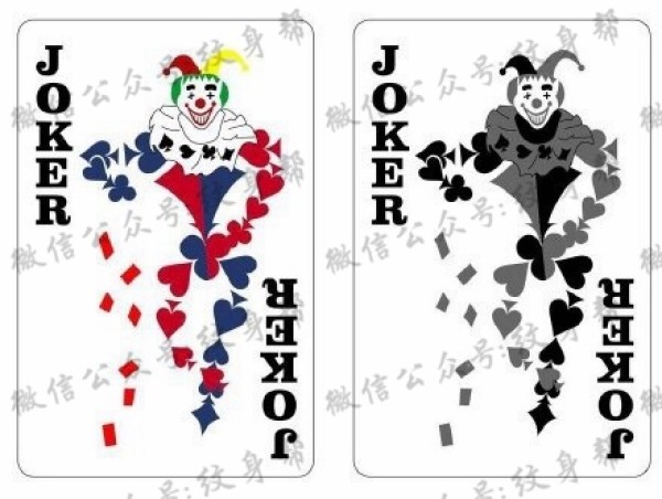 小丑扑克牌纹身_一组简约扑克牌小丑纹身图案图片