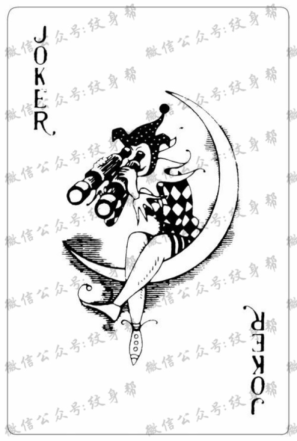 小丑扑克牌纹身_一组简约扑克牌小丑纹身图案图片