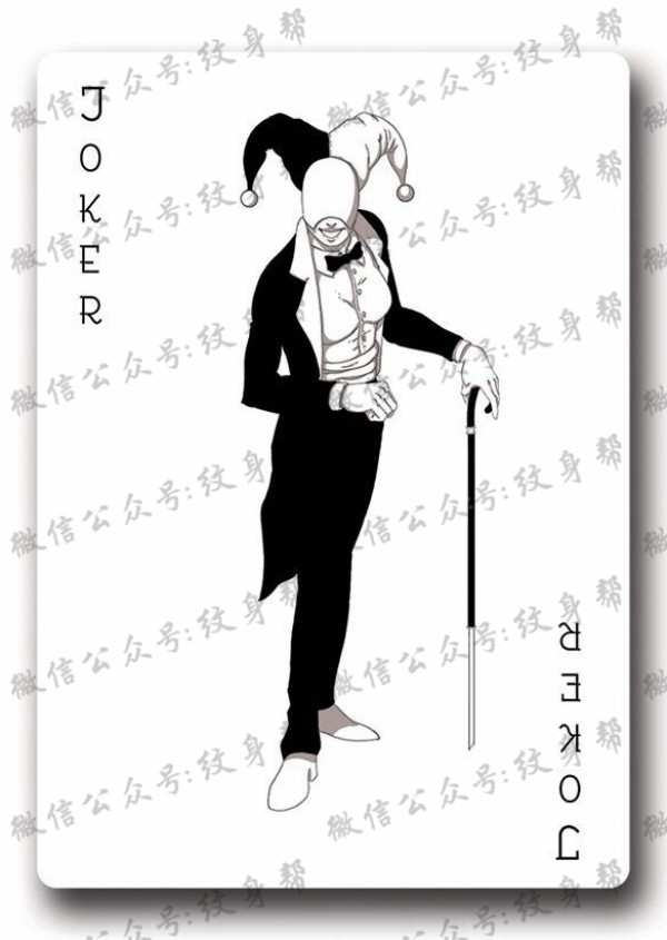小丑扑克牌纹身_一组简约扑克牌小丑纹身图案图片