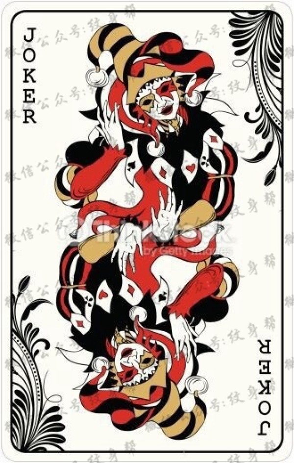小丑扑克牌纹身_一组简约扑克牌小丑纹身图案图片