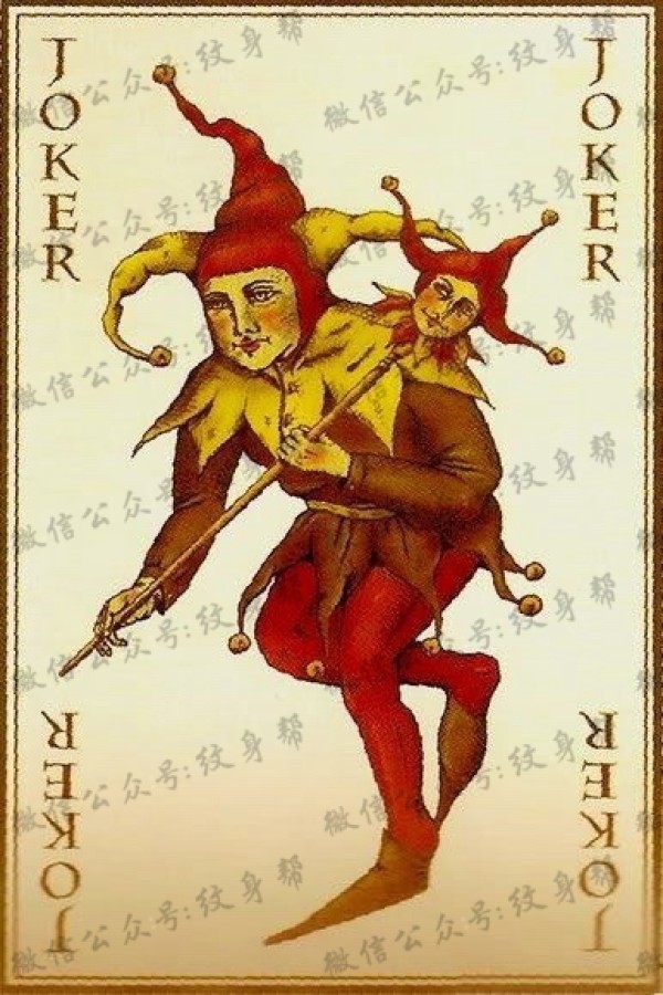 小丑扑克牌纹身_一组简约扑克牌小丑纹身图案图片