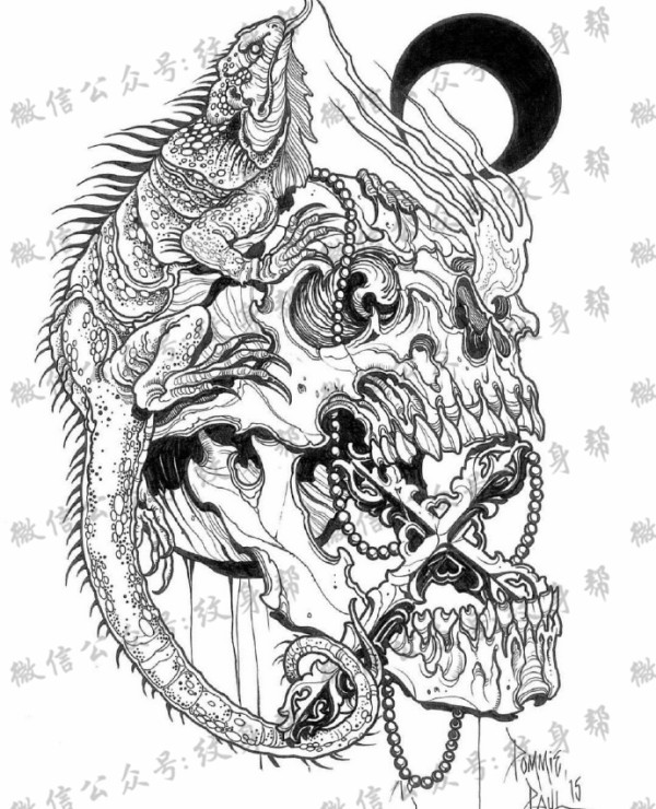 新传统纹身线稿_18张黑白新传统风格的纹身手稿线稿图案