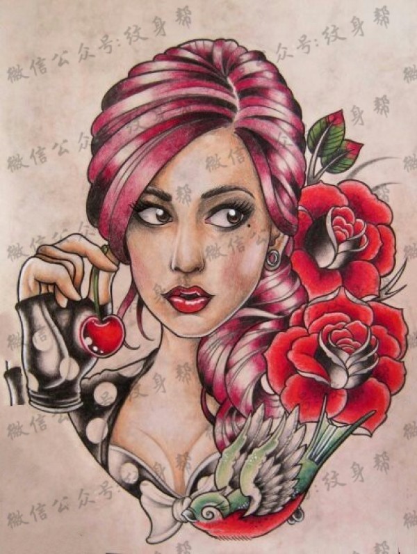 school女生肖像手稿_11张女生肖像的school纹身手稿图案