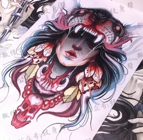 school女生肖像手稿_11张女生肖像的school纹身手稿图案