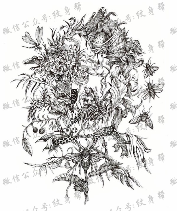 黑白色插画_一组9张黑白色好看的插画纹身手稿图案图片