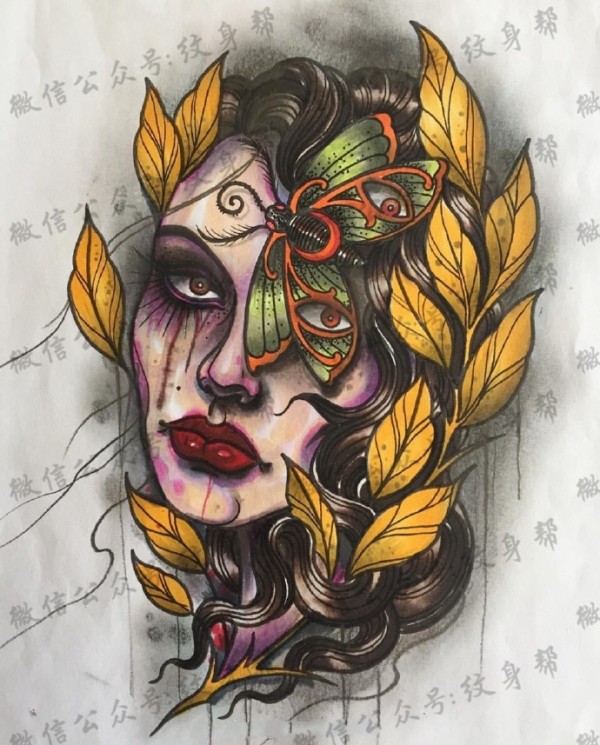传统艺妓般若纹身图案手稿