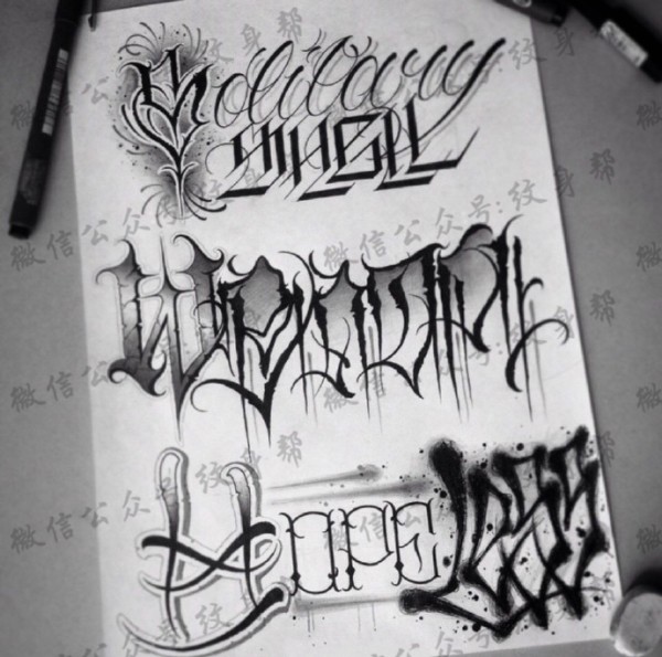 奇卡诺字体手稿_一组漂亮的奇卡诺花体字纹身图案手稿