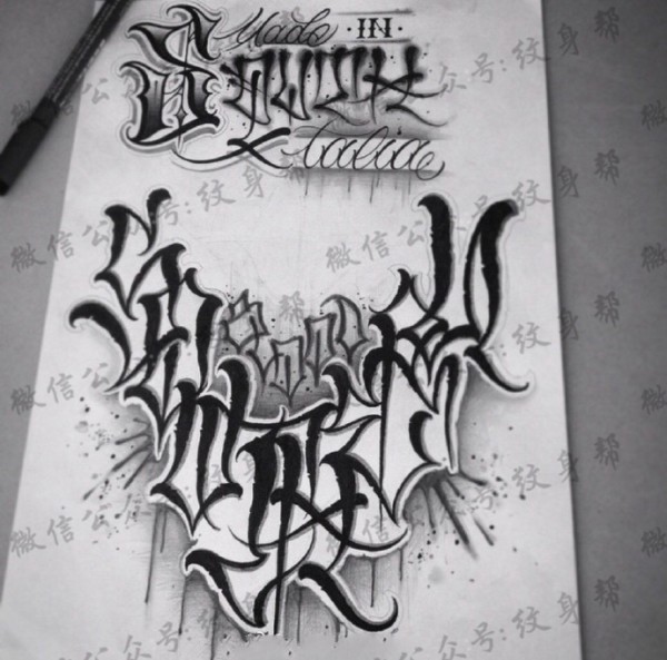 奇卡诺字体手稿_一组漂亮的奇卡诺花体字纹身图案手稿