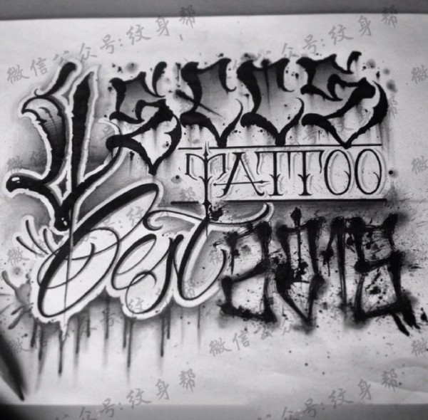 奇卡诺字体手稿_一组漂亮的奇卡诺花体字纹身图案手稿