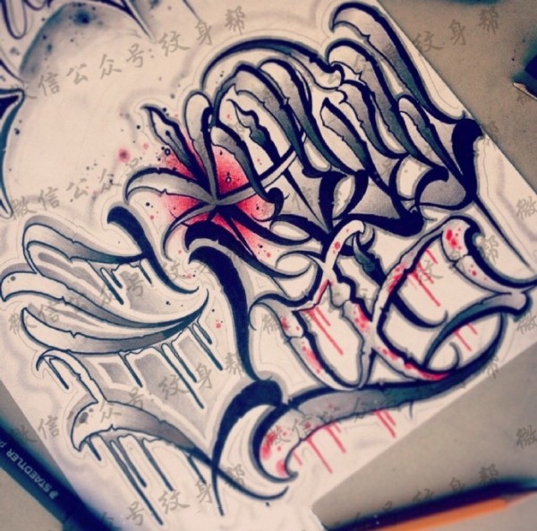 奇卡诺字体手稿_一组漂亮的奇卡诺花体字纹身图案手稿