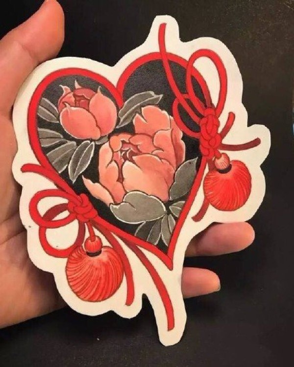 传统纹身手稿-红黑相间的传统纹身手稿图案