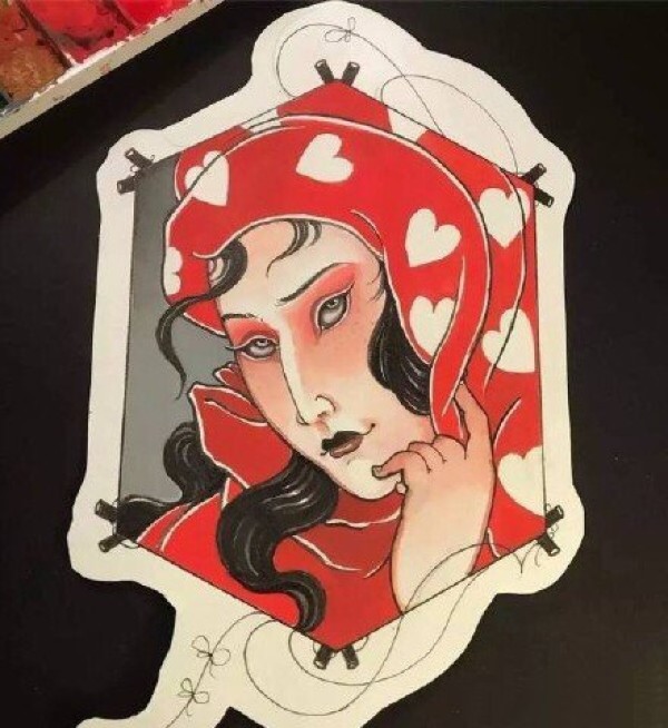 传统纹身手稿-红黑相间的传统纹身手稿图案
