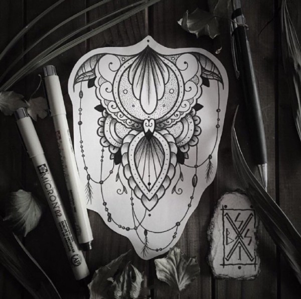 女生喜爱的简单手绘纹身图案来自于纹身师安雅