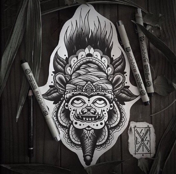 35款创意的黑灰色纹身手稿设计图片