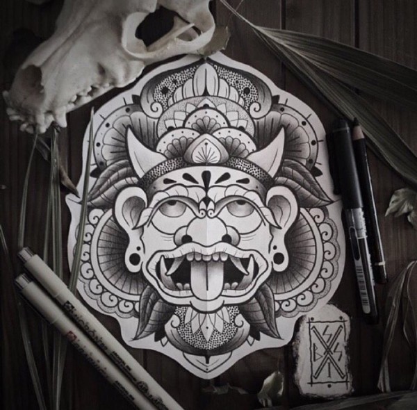 半甲唐狮手稿 传统的9款唐狮主题半甲纹身手稿图片
